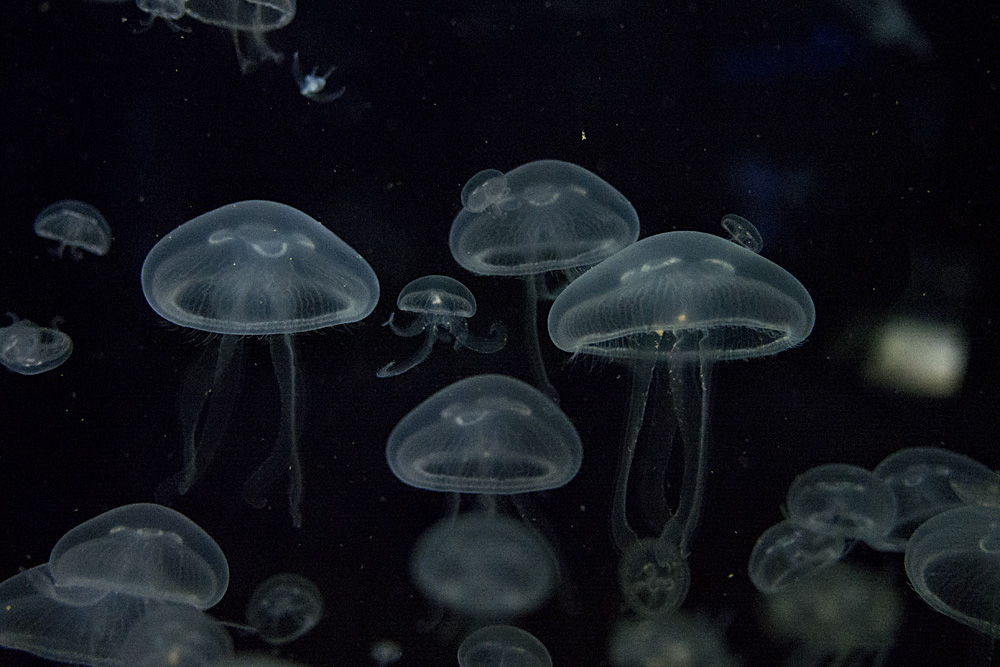 Moon Jelly Family Published May 28, 2013 at 1000 × 667 in Jellies Invasion Exhibit at National Aquarium Baltimore ← Previous Next → This cluster of Moon Jellies seemed to pose for a family portrait as I was admiring them
