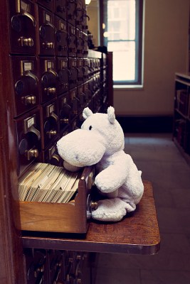 George Peabody Library Card Catalog and a Tiny Hippo Published July 10, 2013 at 667 × 1000 in The George Peabody Library, Baltimore, Maryland ← Previous Next → You can browse the card catalog, they didn’t seem to have any books on Tiny Hippos, though