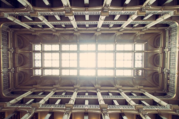 George Peabody Library Skylight Published July 10, 2013 at 1000 × 667 in The George Peabody Library, Baltimore, Maryland ← Previous Next → The cathedral like space is heightened with the giant skylight that stretches the with of the room