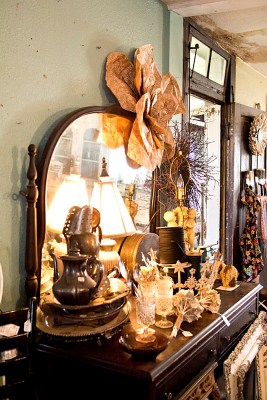 Romantic Dark Dresser Published October 2, 2013 at 667 × 1000 in Sisters Garden and Bloom ← Previous Next → As you can see from the ceiling and walls the merchandice is not the only old thing about Sisters and Bloom. Each shop is housed in old, happily distressed, farm houses.