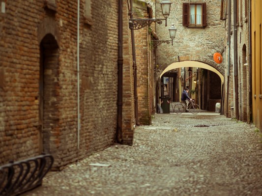 Ferrara Street With Biker Published February 27, 2014 at 1000 × 750 in Bikes of Ferrara, Italy ← Previous