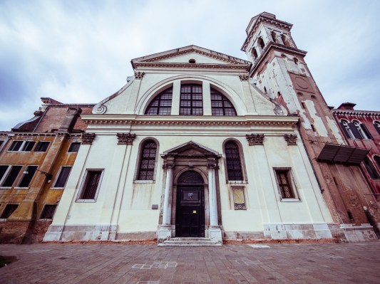 San Trovaso, Venice Published April 5, 2014 at 1000 × 750 in Tiny Hippo Tours the Churches of Venice ← Previous Next → San Trovaso has two identical facades. This was so that the two rival Venetian factions, the Nicolotti and Castellani, could each have their own entrance of equal importance. I wonder where the Tiny Hippos enter.