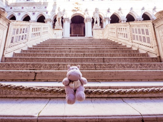 The Giants’ Staircase with a Tiny Hippo Published June 22, 2014 at 1000 × 750 in St Mark’s Basilica and Doge’s Palace Explored by a Tiny Hippo ← Previous Next → Here I am in front of the Giants’ Staircase, surprisingly, there is a swing just for Tiny Hippos stung across the stairs.