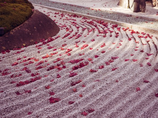 Gravel design in rock garden Published October 19, 2015 at 1000 × 750 in Tiny Hippo Stays at a Temple ← Previous Next → Just be careful where you tread, only the leaves are allowed to venture into the intricate patterns.