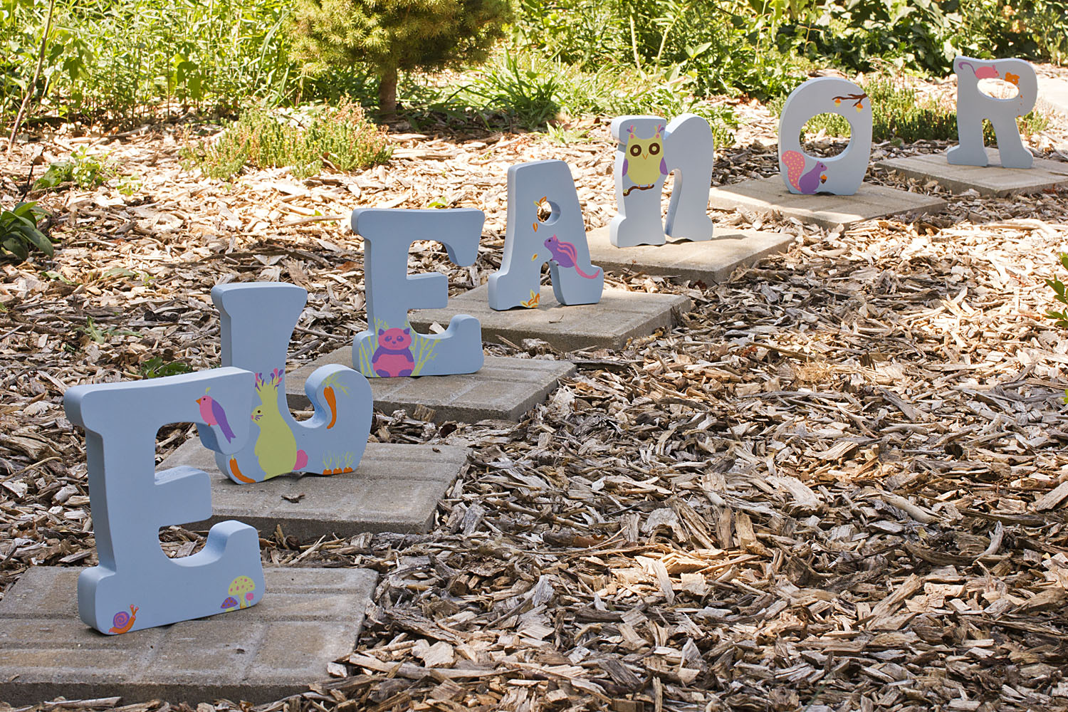 To do this project head to Hobby Lobby, or an equivalent craft store and purchase some wood or resin letters. The color of the letters is not important, you can spray paint them any color that you like. Also, be sure that you are spelling the name correctly, I have had to paint a new letter after completion of all the letters because I miss spelled the name, talk about embarrassing. I like to get letters that have mounts for hanging and also can stand up on their own so the parents can decide how they would like to display them.