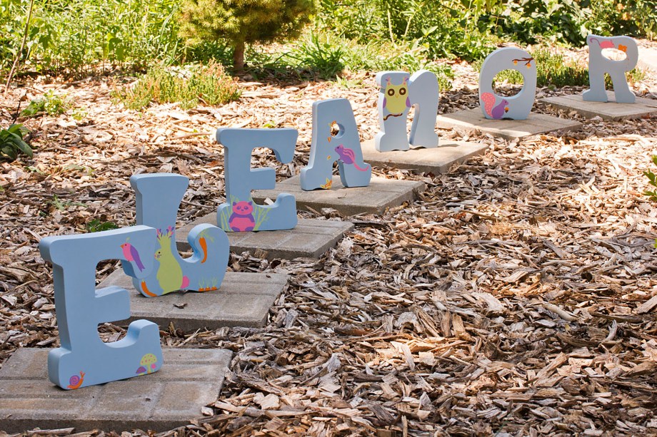 Make sure to find out the color scheme or theme of the nursery so that your letters don’t clash with the decor, no one wants monster truck letters in their cloud themed room. Once you have selected a color, sand and spray paint the letters. This will probably take many coats, depending on how long the name is be sure to buy more than one can of spray paint. The name “Eleanor” took about a can and a half of spray paint.