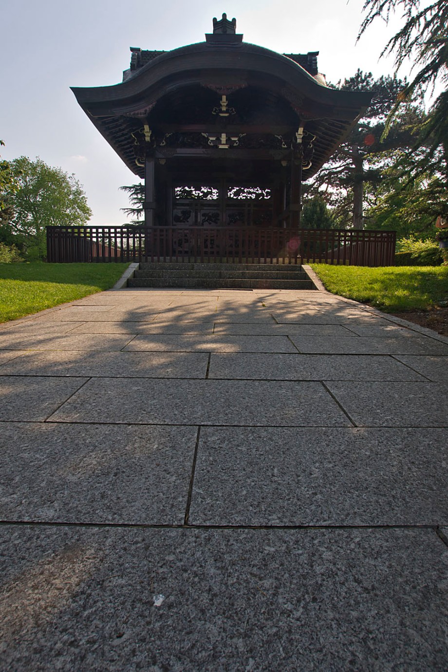 The gateway is a four-fifths replica of the 1573 Nishi Hongan-Ji gate in Kyoto, Japan. The gateway was created for the Japan-British Exhibition in London in 1910. Once the Exhibition was over the gateway was dismantled and reconstructed on Mossy Hill, near the Pagoda in Kew Gardens.