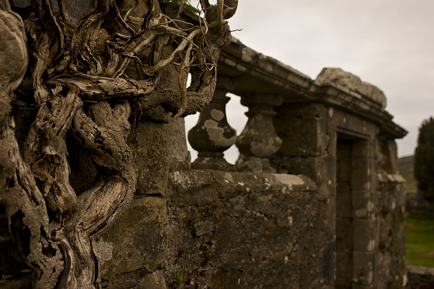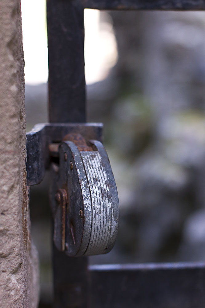 To enter the ruins, one passes through a small iron gate that is often left open, as can be seen by the neatly trimmed grass, a hallmark of the free-range sheep of the area.