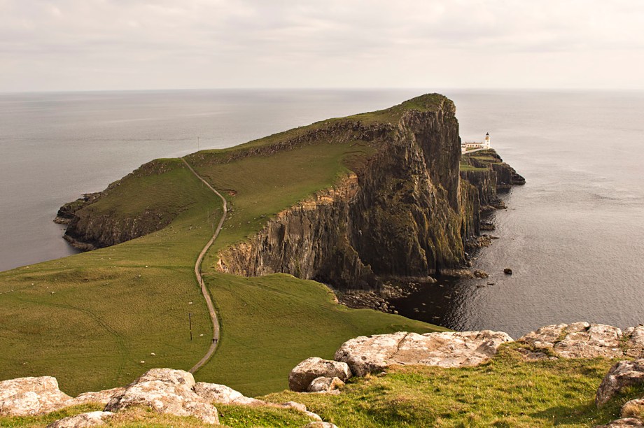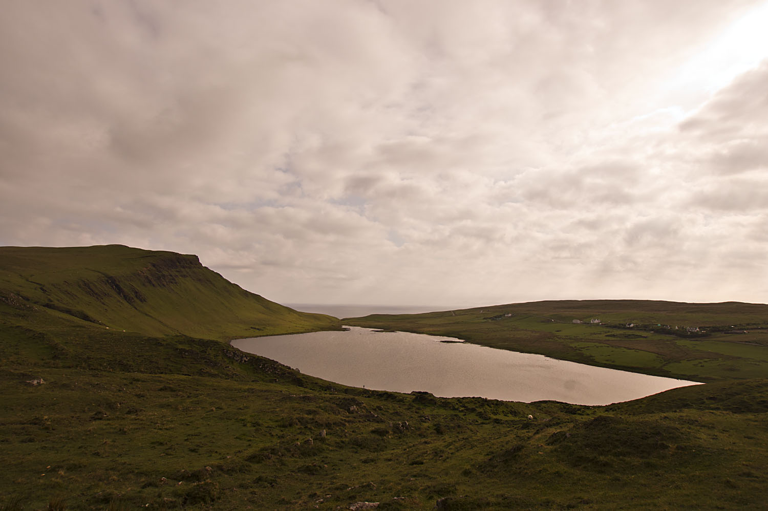The more subtle features of the area can be just as dramatic as the showy ones. On the drive to Neist Point you will pass Loch Mor, a lake that seems to float in the cradle of the surrounding hills.